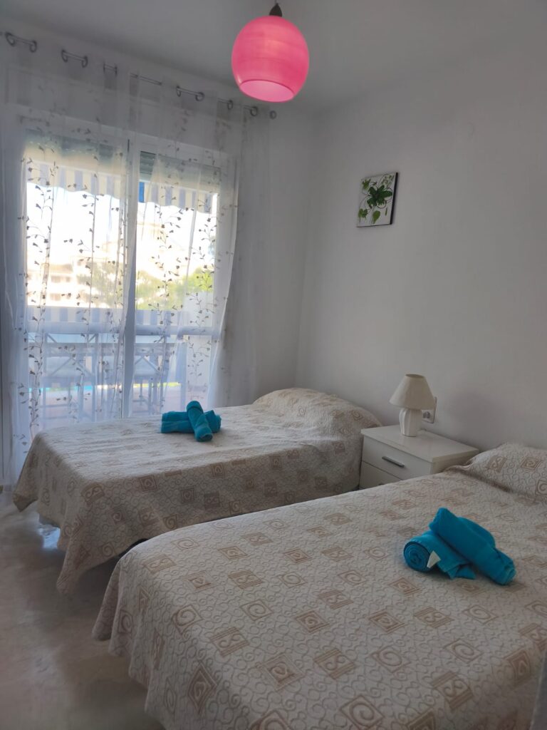 Les presentamos este acogedor apartamento, perfecto para disfrutar de una estancia cómoda y práctica. La vivienda cuenta con 2 dormitorios (uno con cama doble y otro con dos camas individuales), 1 baño, cocina con lavadero, y un salón amplio y luminoso con salida a la terraza, desde la cual se puede contemplar la piscina y los jardines de la comunidad.